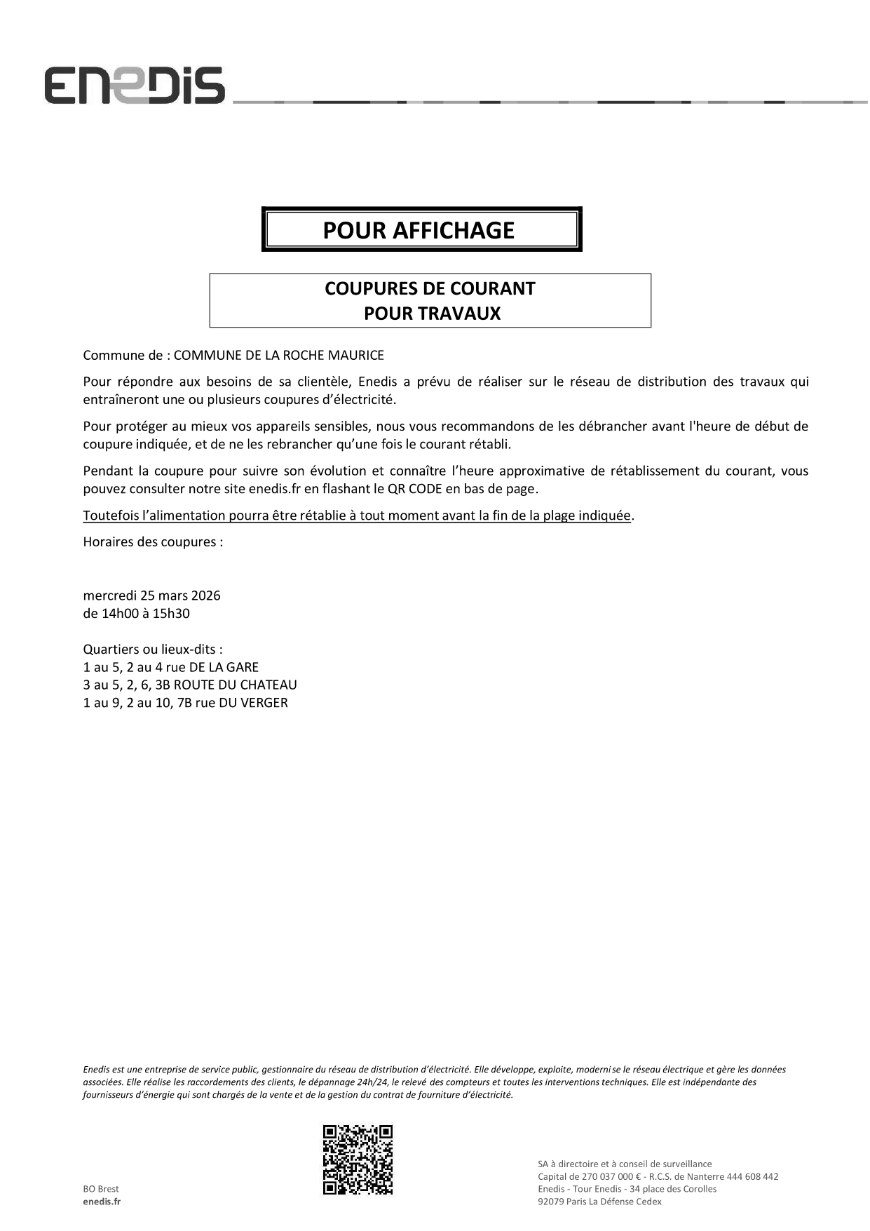 Coupure ENEDIS-mercredi 25 mars 2026